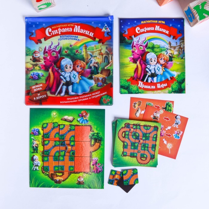 Магические правилаВозьмите карточку с заданием и расположите магнитные детали на игровом поле так, чтобы дорожки, изображённые на них, приводили к персонажам или разделяли их. В наборе девять элементов с дорожками разной формы. Попробуйте решить головоломку!