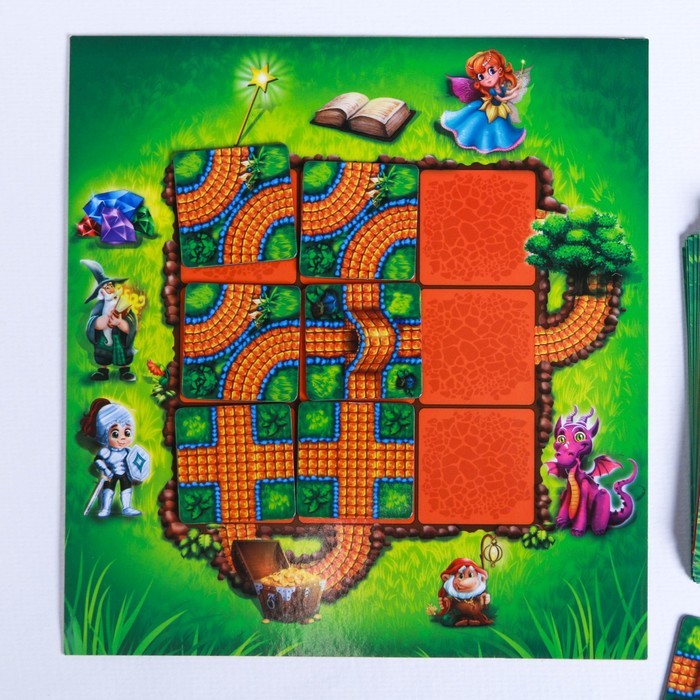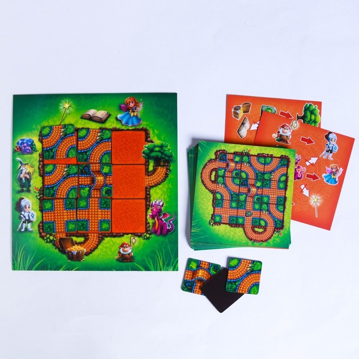 Волшебная головоломка! В Стране Магии происходят загадочные вещи: дорожки меняются местами, соединяя и разъединяя волшебных героев. Разложите плитки на игровом поле так, чтобы сказочные персонажи смогли встретиться или, наоборот, пойти по разным тропинкам.
