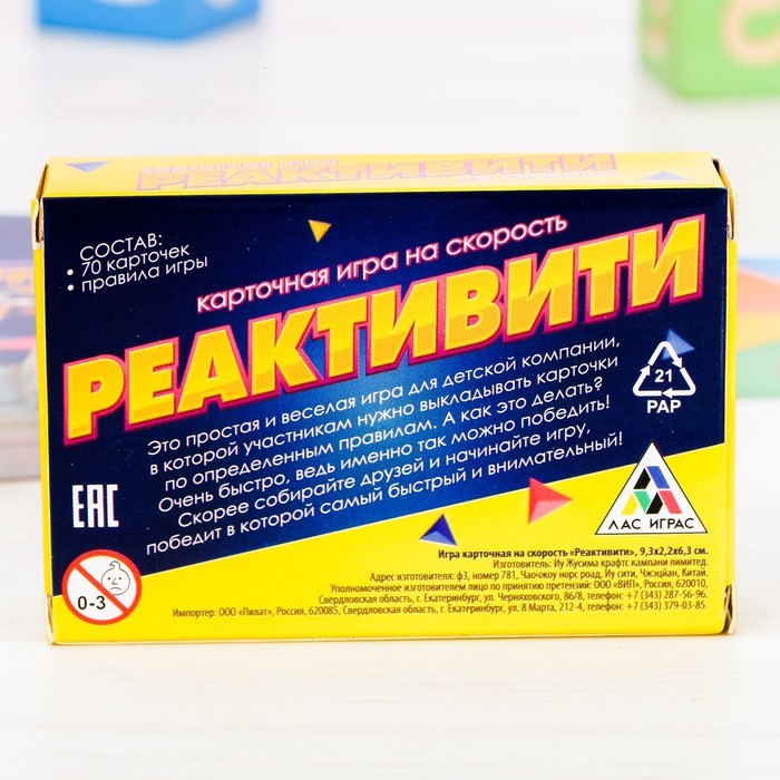 Лас Играс. 3649328 Игра карточная на скорость "Реактивити"