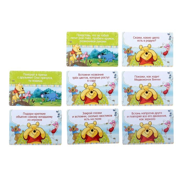 А у кого окажется меньше баллов, тот вытягивает карточки и выполняет весёлые задания от медвежонка Винни.