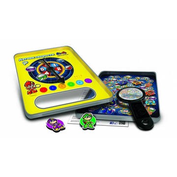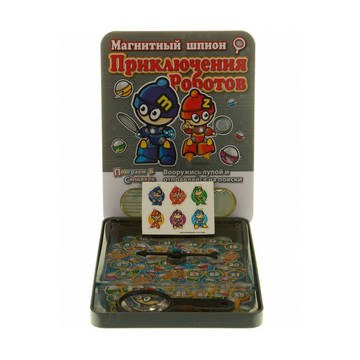 Игра на внимательность из серии "Шпионские игры", где вам посредством лупы за минимальное количество времени необходимо найти выпавший на волчке предмет. "Приключения роботов" - это игра 2 в 1: на игровом поле вы найдете дорожку для того, чтобы играть в классическую ходилку.