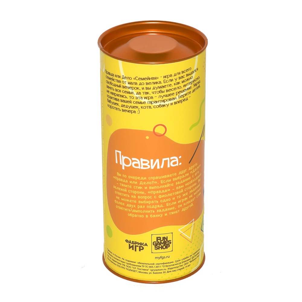 Веселая игра для семьи! Вы по очереди спрашиваете друг друга «Правда или Дело?». Если выбрали «Дело» - тяните стик и выполняйте задание, «Правда» - вам необходимо правдиво ответить на вопрос. В игре нет ни победителей, ни проигравших – главное участие.