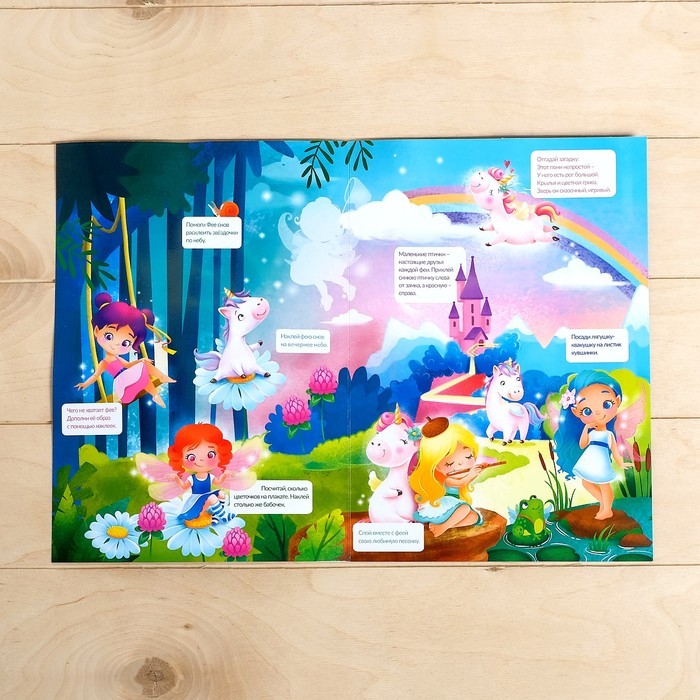 Игровой набор со светящимися наклейками — это простор для воображения ребёнка. Малышу предстоит отгадывать загадки и выполнять задания с плаката, используя многоразовые стикеры.
