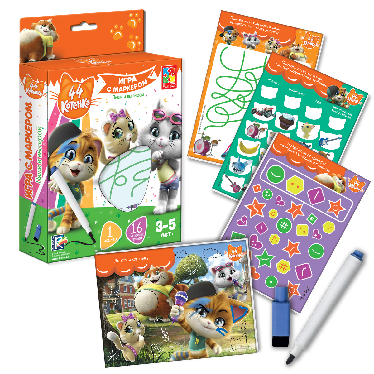 Развивающая игра VLADI TOYS VT5010-07 с маркером 44 Котенка 3-5 лет